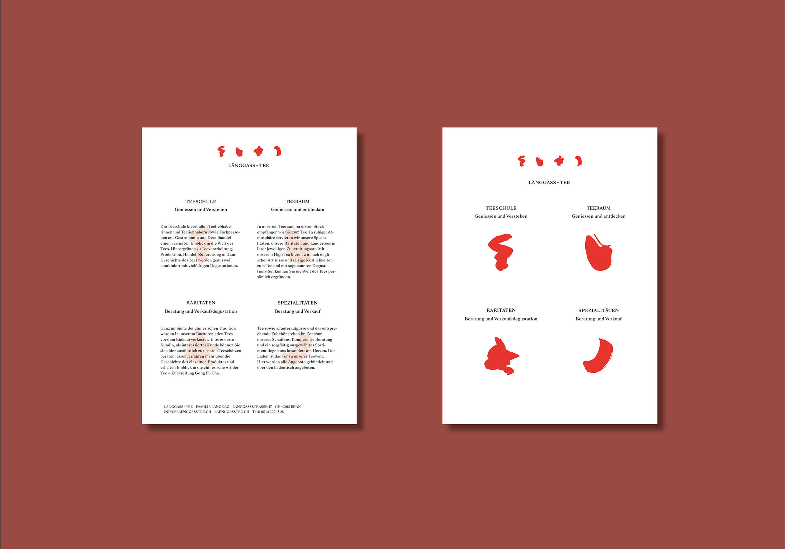 Entwicklung der visuellen Identität für Länggasstee Bern. (Nicht realisiert.) Zusammenarbeit mit Yves Graber.